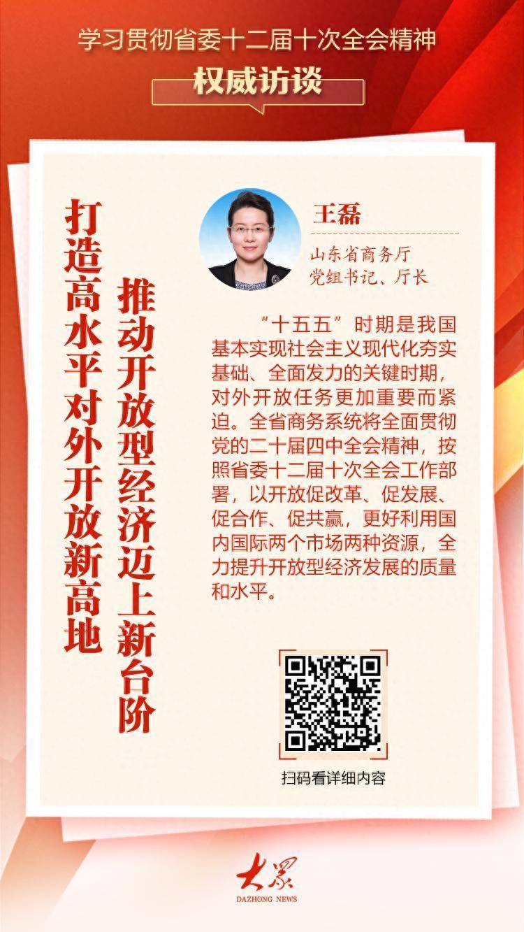 “十五五”时期是我国基本实现社会主义现代化夯实基础、全面发力的关键时期,对外开放任务更加重要而紧迫。全省商务系统将全面贯彻党的二十届四中全会精神,按照省委十二届十次全会工作部署,以开放促改革、促发展、促合作、促共赢,更好利用国内国际两个市场两种资源,全力提升开放型经济发展的质量和水平。
