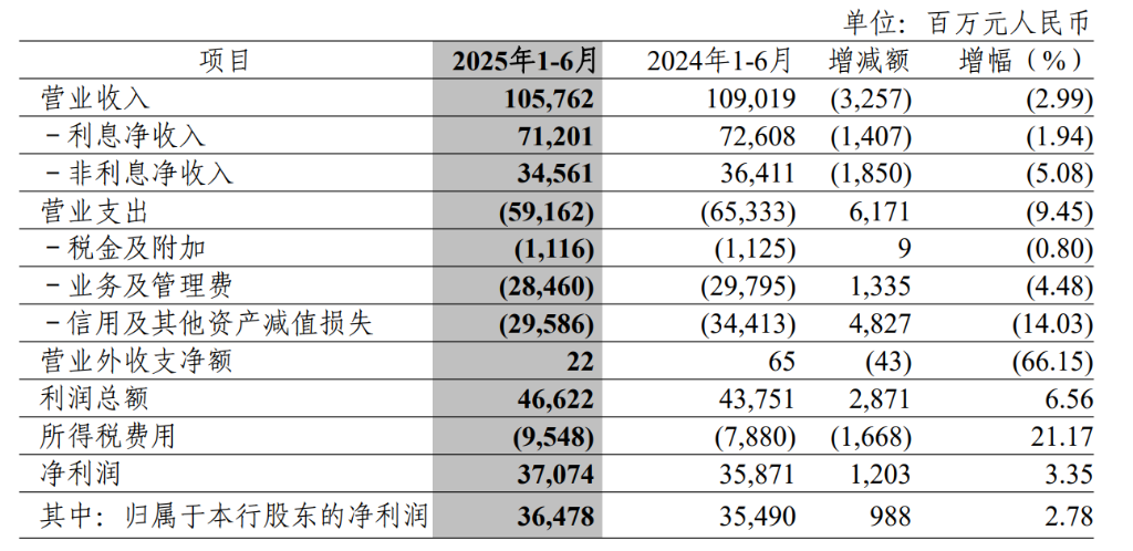 上半年,中信银行实现利息净收入712.01亿元,同比下降1.94%,实现非利息净收入345.61亿元,同比下降5.08%。利息净收入表现更有韧性。