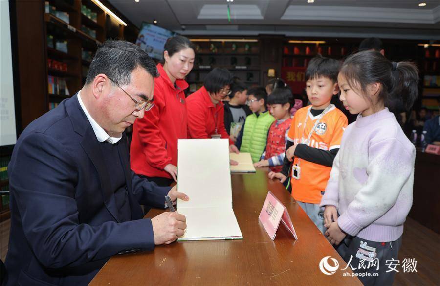 蔡国军为小读者签名。人民网记者 王晓飞摄